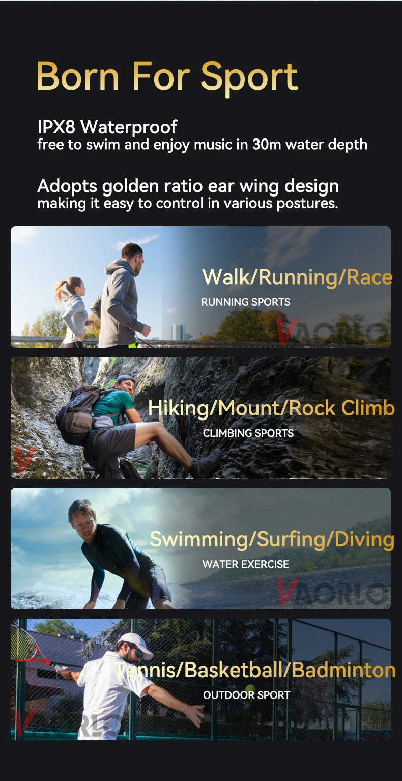 Elevate your workouts and water adventures with the VAORLO WaveBeat S10, a next-generation true bone conduction wireless headphone. With IPX8 waterproofing, Bluetooth 5.4 connectivity, and a built-in 32GB MP3 player, it delivers crystal-clear HiFi sound while keeping your ears free and aware of your surroundings. Its ergonomic ear hook design ensures a secure fit for swimming, running, cycling, or any high-intensity activity.
