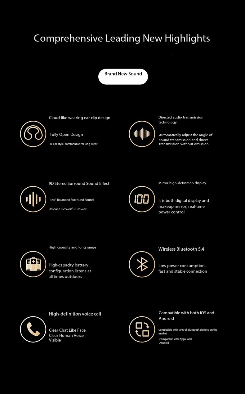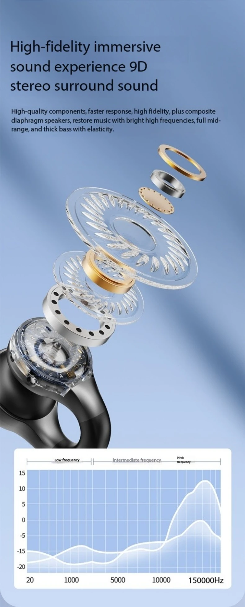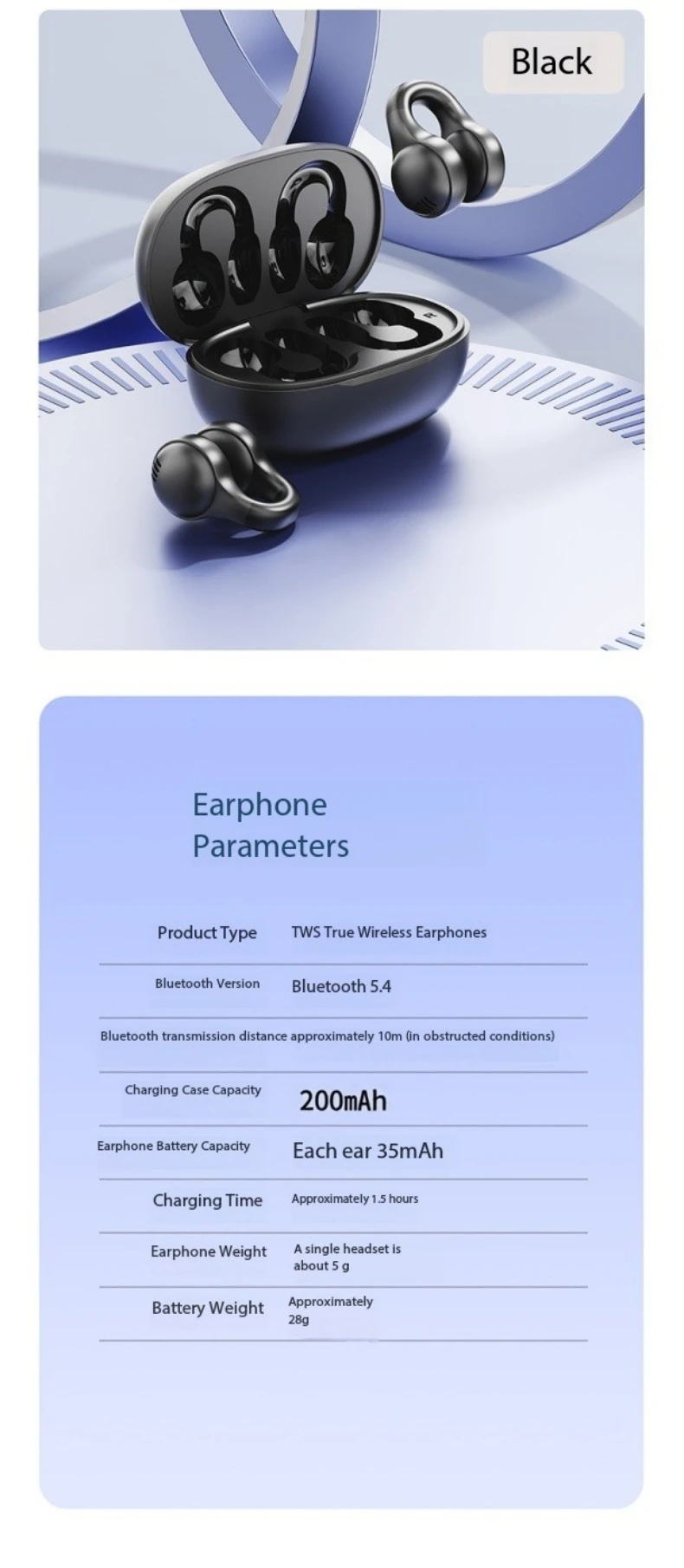 Enjoy versatile, high-quality audio with these Wireless OWS Ear Clip Headphones. Featuring dynamic drivers and AAC support, they deliver clear, balanced sound for music, calls, gaming, workouts, or outdoor activities. Their semi-open design and secure ear clip style ensure a comfortable, stable fit, while built-in microphones and Amazon Alexa support make hands-free control simple and convenient.